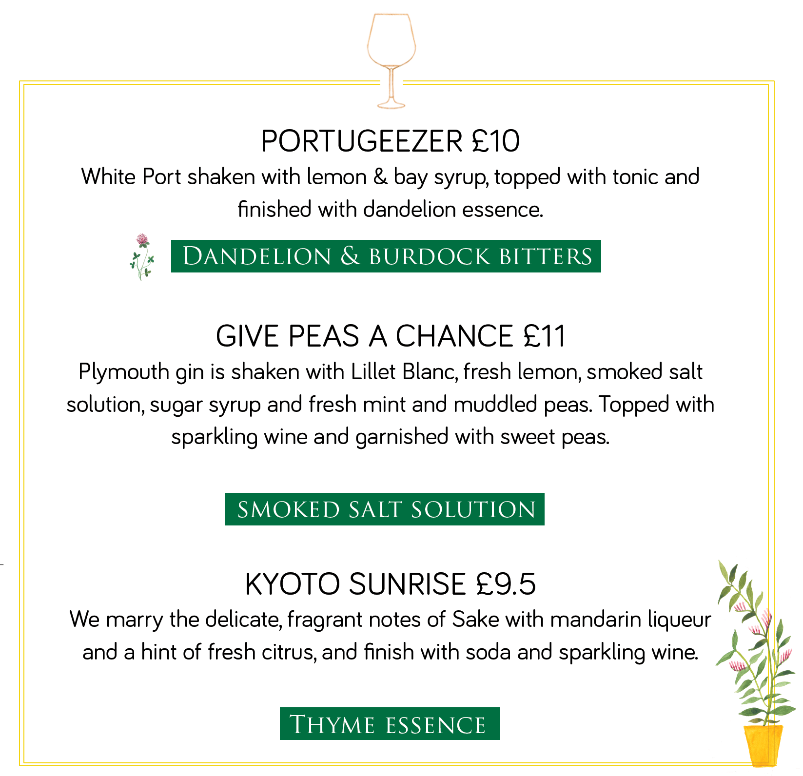 Inspired by nature’s larder, each drink comes with a recommended garnishing option with tinctures, jams, shrubs and scented mists designed to capture the essence of a British summer.