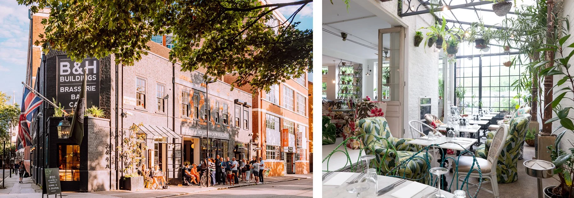 Tucked away on a quiet Clerkenwell street, B&H Buildings is a light-filled townhouse with an effortless inside-outside flow. Open large windows and doors lead onto the street and a leafy park beyond, while vibrant greenery and vintage furnishings create a relaxed yet stylish atmosphere.